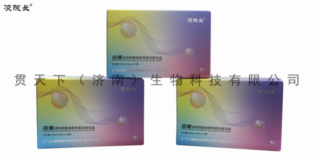 高亲水性和高保水性:透明质酸钠具有很强的亲水性和保水性,能够吸收大量的水分,形成一层保湿膜,保持皮肤或其他组织的湿润和柔软。这种特性使透明质酸钠成为化妆品中重要的保湿成分之一。高黏弹性和良好的生物相容性:透明质酸钠具有很高的黏弹性和良好的生物相容性,能够在体内长时间停留并发挥作用。这种特性使透明质酸钠在医药领域具有广阔的应用,如作为关节腔内润滑剂、眼用药物载体等。透明质酸钠在医药领域具有广阔的应用,如作为关节腔内润滑剂关节炎、作为眼用药物载体提高药物生物利用度等。贯天下(济南)生物科技有限公司是凌沛学院士健康产业品牌“凌院长”全国运营商。内蒙古胶原蛋白肽饮品哪里卖